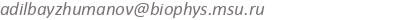 Байжуманов Адиль Ануарович --- канд. биол. наук, старший преподаватель биологического факультета Университета МГУ--ППИ в Шэньчжэне (КНР, 518172, Гуандун, Шэньчжэнь, Лунган, Даюньсиньчэн, ул. Гоцзидасюэюань, д. 1); старший научный сотрудник кафедры биофизики биологического факультета МГУ (Российская Федерация, 119991, Москва, Ленинские горы, д. 1).